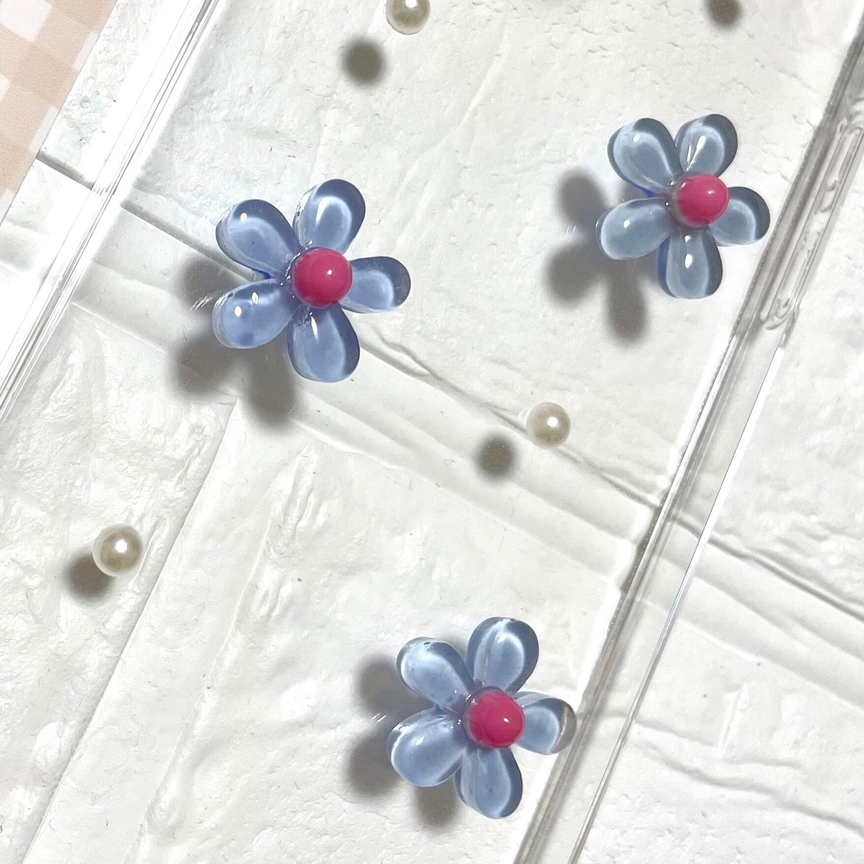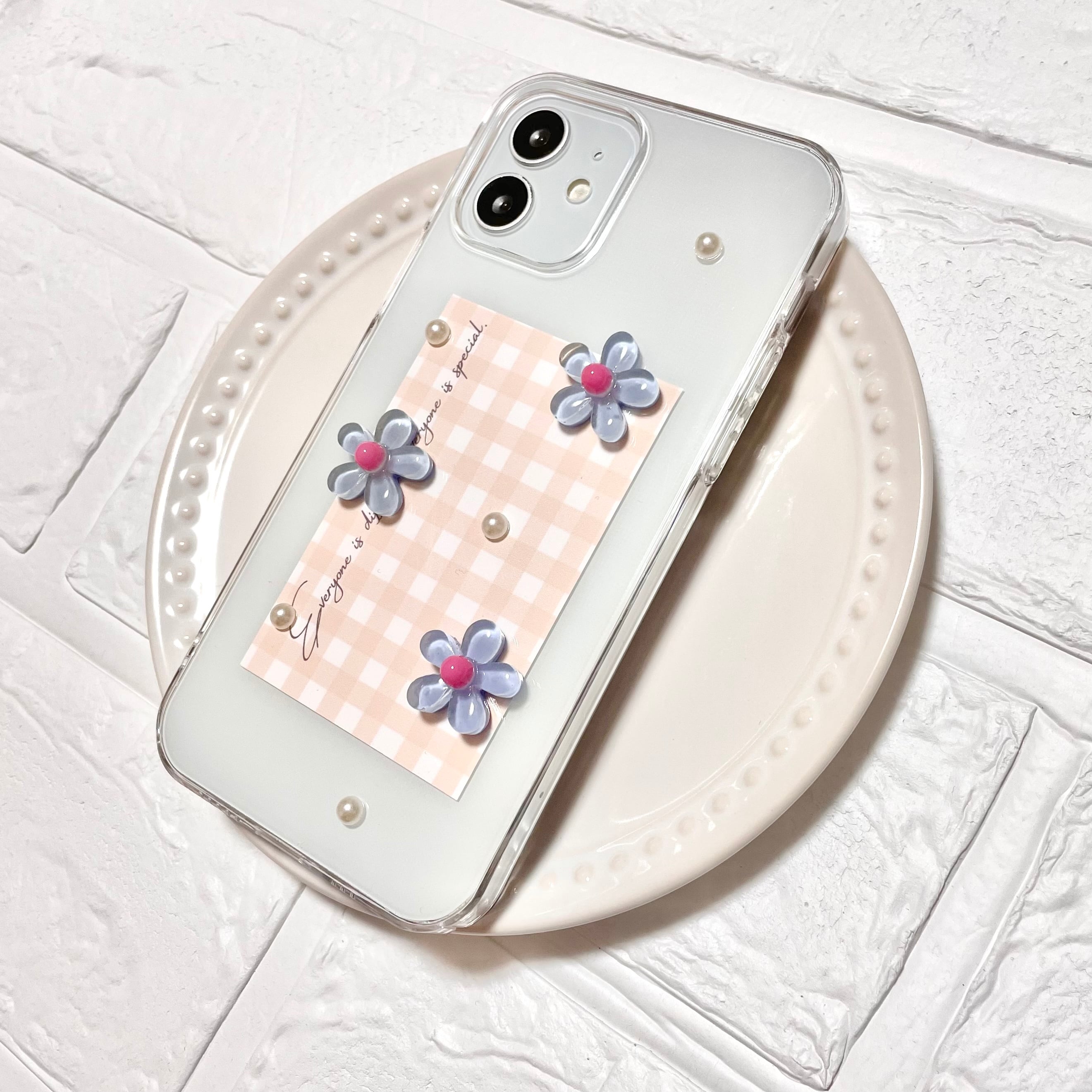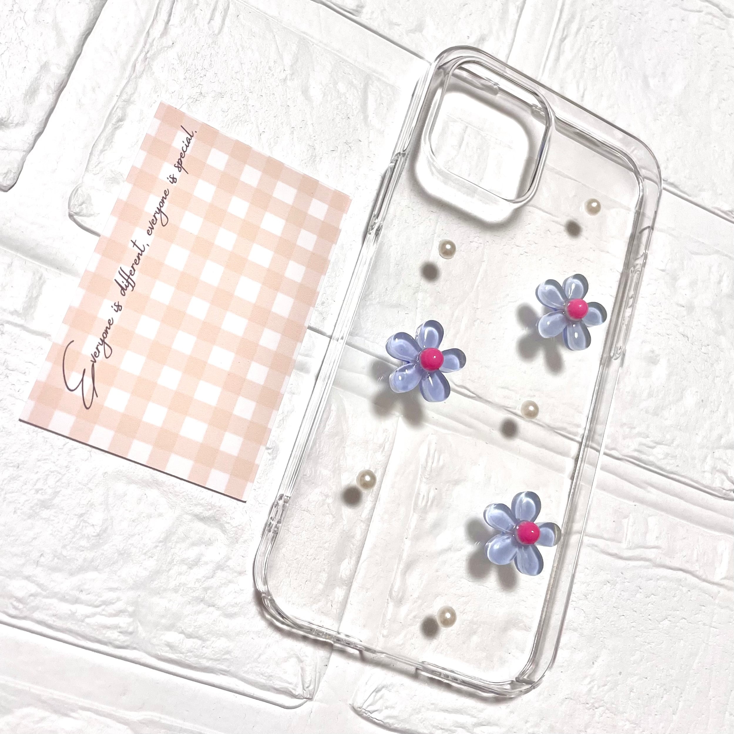 ギンガムチェックとお花のiPhoneケース(水色)